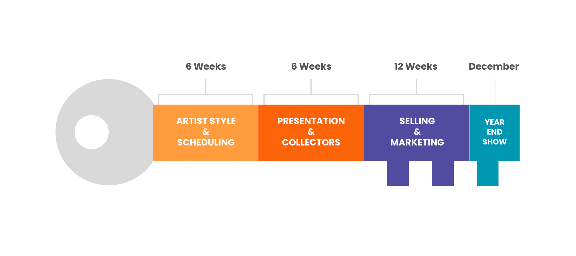 Then, we spend 12 weeks taking a deep dive into various streams of income, financial planning, and how to promote our year-end gallery show.