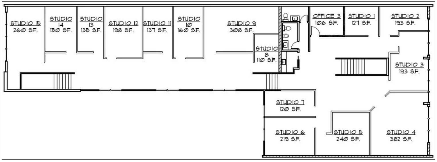- Spaces range from 100–400 square feet